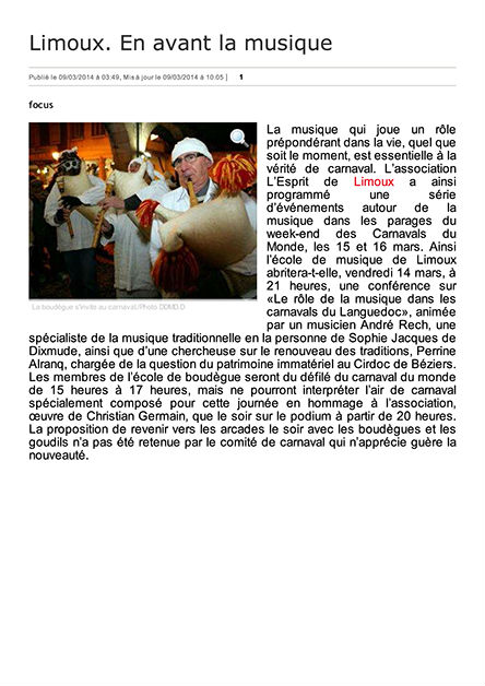 L'objectif est de valoriser notre culture limouxine au travers de diverses manifestations.
